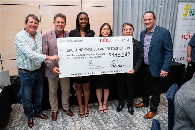 Fujitsu General was proud to take part in the Sporting Chance Celebrity Golf Day on Monday, 13 October 2025. During the event, our Executive General Manager – Sales, Peter Cashel and Mr Hidetoshi Komiya, Deputy Chairman and Director of Fujitsu General Australia, presented Jack Hughes, Executive Director of the Sporting Chance Cancer Foundation, with a cheque for $448,242—Fujitsu General’s annual contribution toward their vital work.